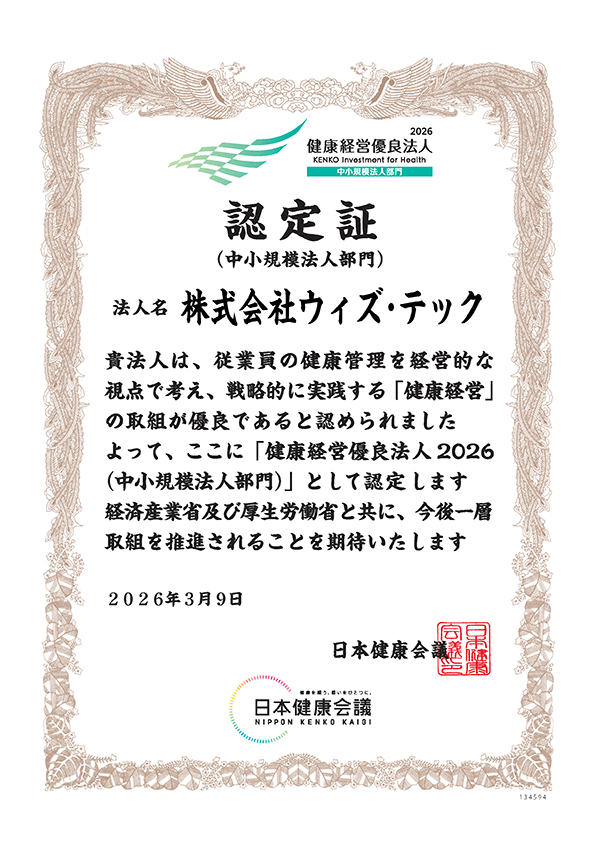 昨年に引き続き、経済産業省が認定する「健康経営優良法人認定制度」において、中小規模法人部門の「健康経営優良法人2026」に認定されました。
